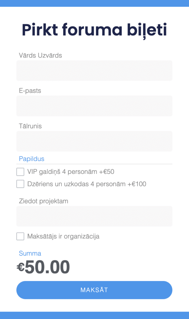 Individuāla pasākuma komunikācijas platformas vietne ar iespēju integrēt dalībnieku reģistrāciju, biļešu tirdzniecību un administrēšanu
